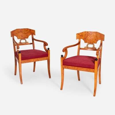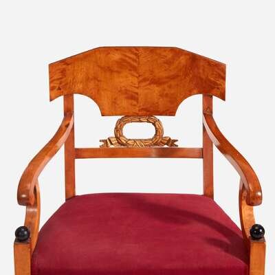 A Pair of Swedish Neoclassical Birchwood Ebonized and Parcel Gilt Armchairs circa 1820