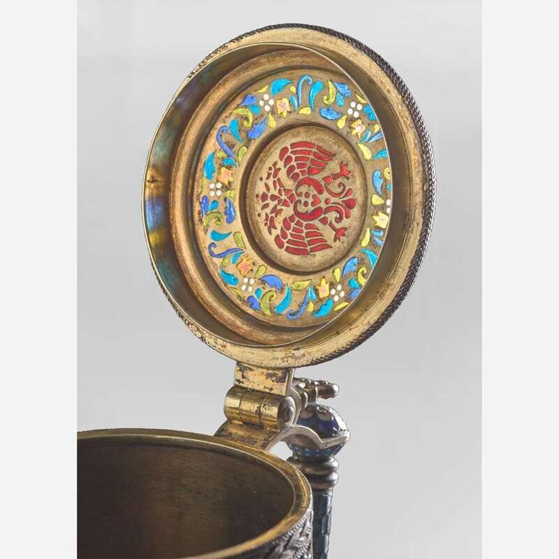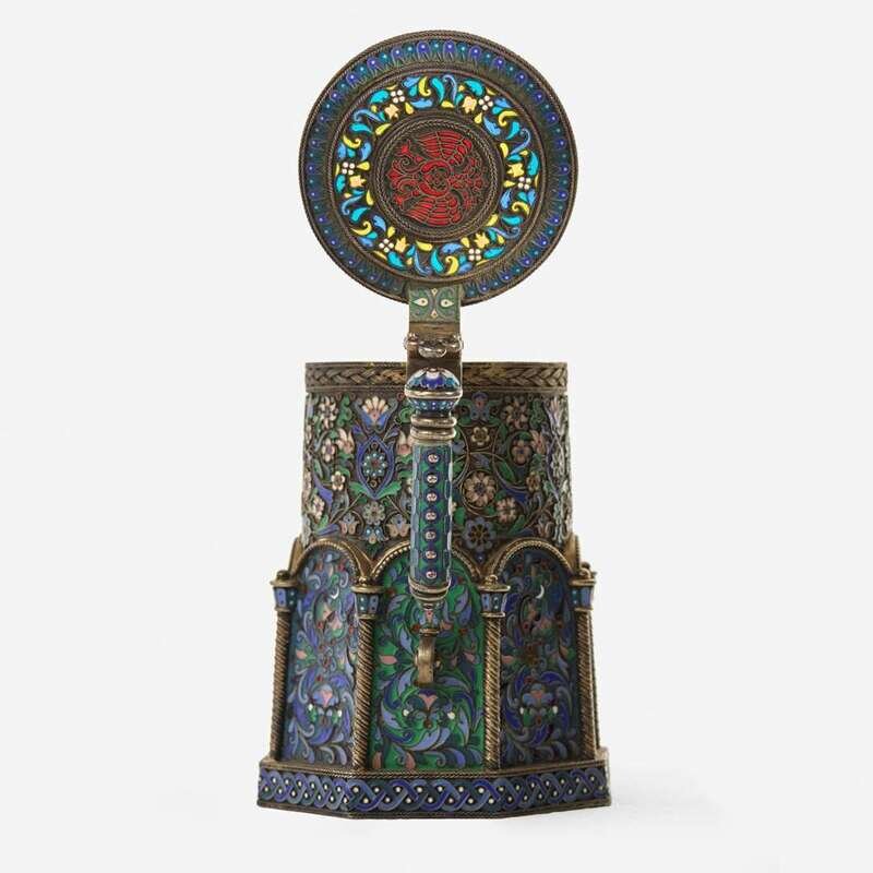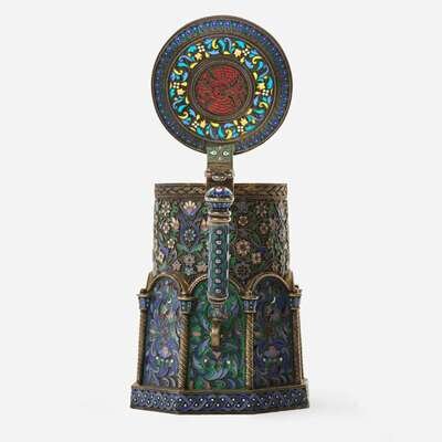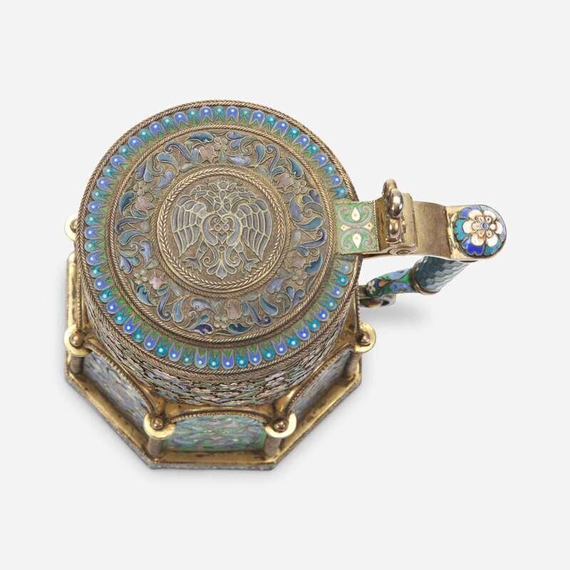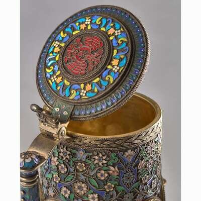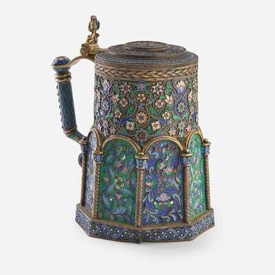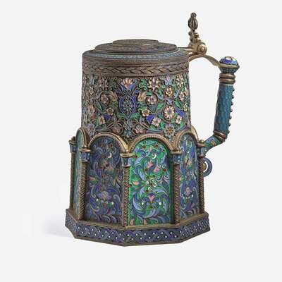 A Russian Silver-Gilt Plique-à-Jour and Cloisonné Imperial Presentation Tankard Pavel Ovchinnikov, Moscow, 1892