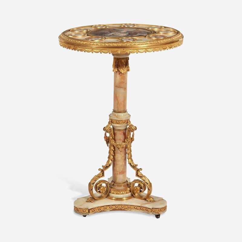 A Fine Sèvres Style Porcelain-Inset Gilt Bronze Mounted Onyx Side Table early 20th century