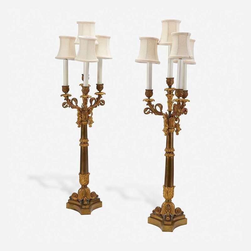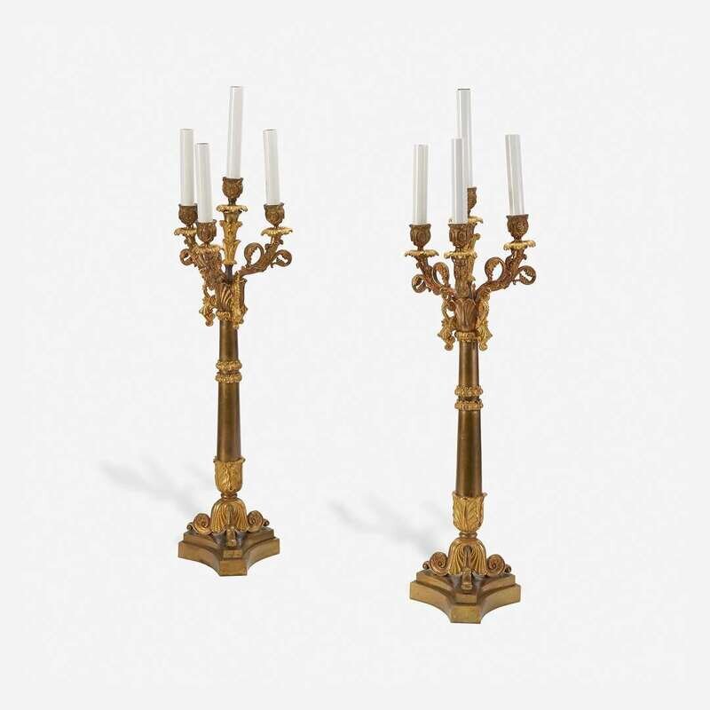 A Pair of Empire Gilt and Patinated Bronze Four-Light Candelabra early 19th century
