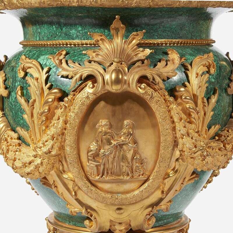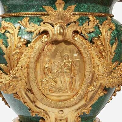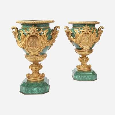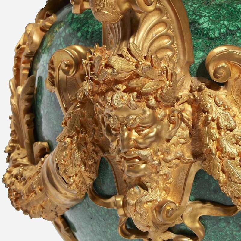An Impressive Pair of Louis XVI Style Malachite and Gilt Bronze Urns 20th century