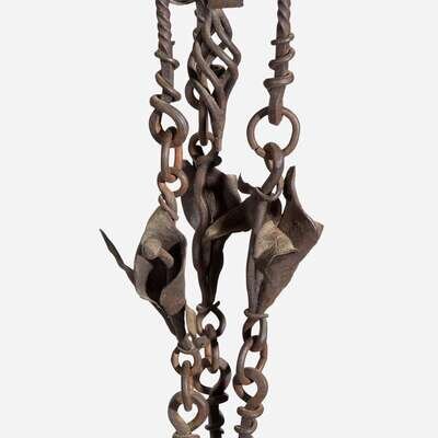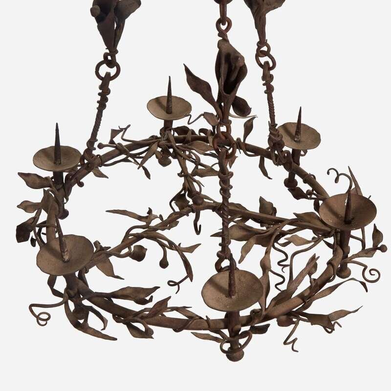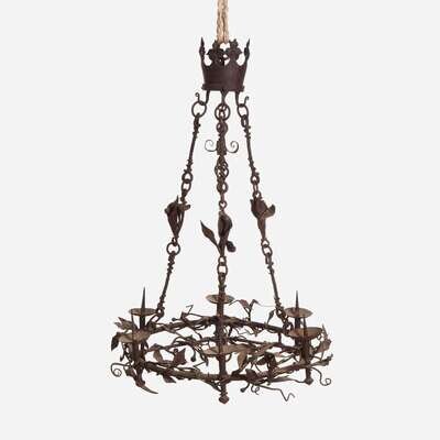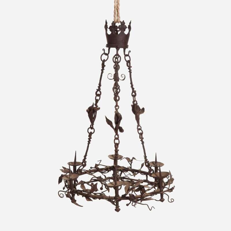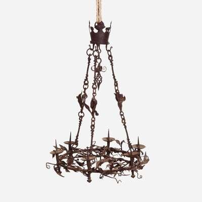 A Gothic Wrought Iron Six-Light Pricket Chandelier French, 15th century or later