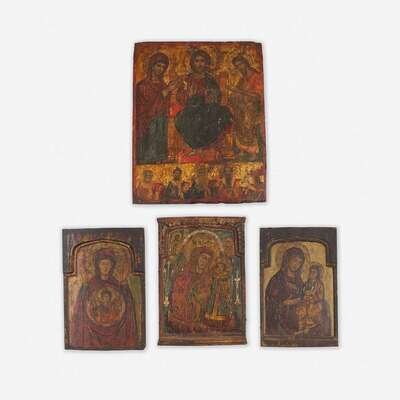 Comprising two depicting the Virgin and Child, one of Our Lady of the Sign, and one of Christ enthroned flanked by Mary and Saint John the Baptist, above a register of five saints. (4).