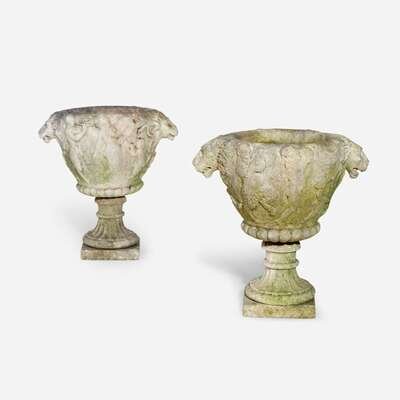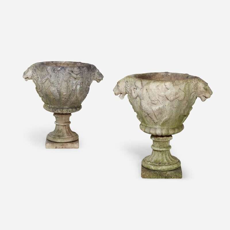 A Pair of Carved Stone Garden Urns Italian, likely 16th century