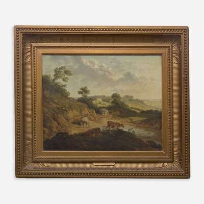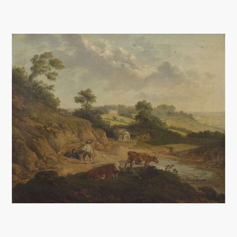 Attributed to Thomas Hand (British, 1771–1804) Extensive Landscape with Figures, Cattle, Horses and Donkeys, with Building in Distance
