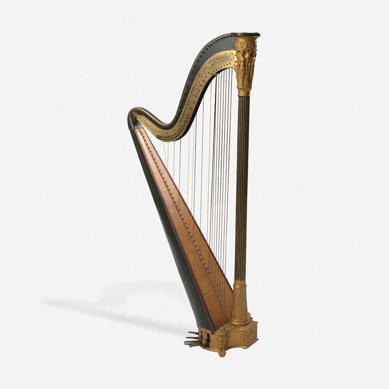 A Sebastian Erard Parcel Gilt and Green-Painted Harp 19th century