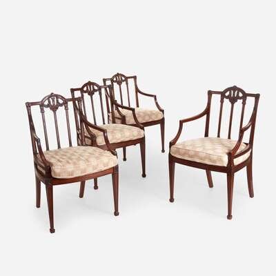 A Set of Four George III Carved Mahogany Armchairs circa 1800