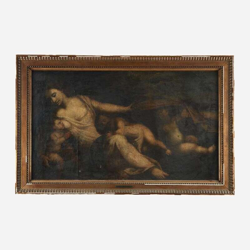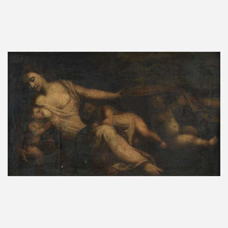 Italian School (17th Century) Maiden with Cherubs in a Landscape, Possibly Gaia with her Children
