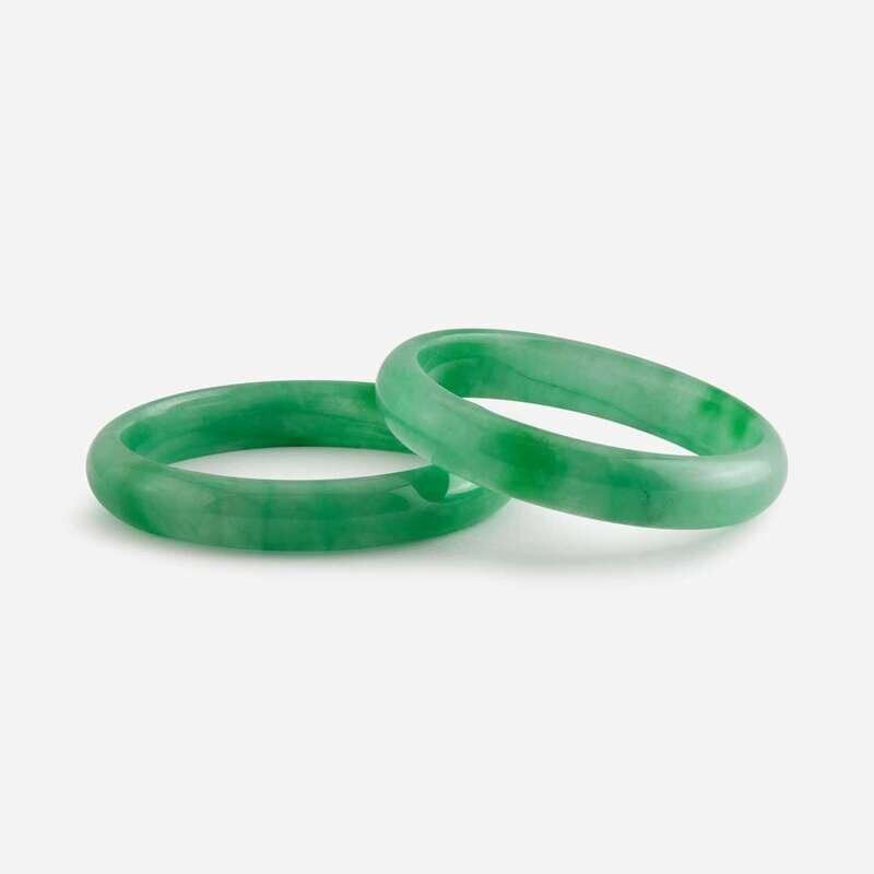 Two jadeite bangles with straight interiors 翡翠平安镯一组两件