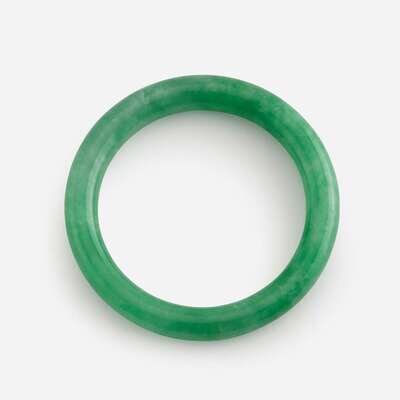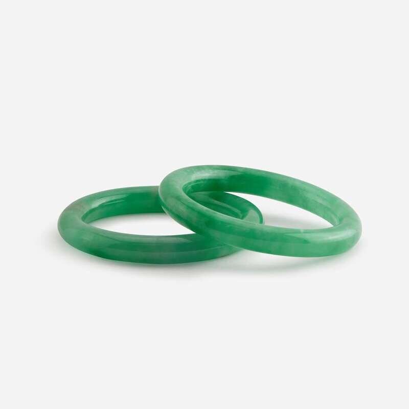 Two jadeite circular bangles 翡翠圆条镯一组两件