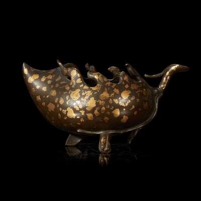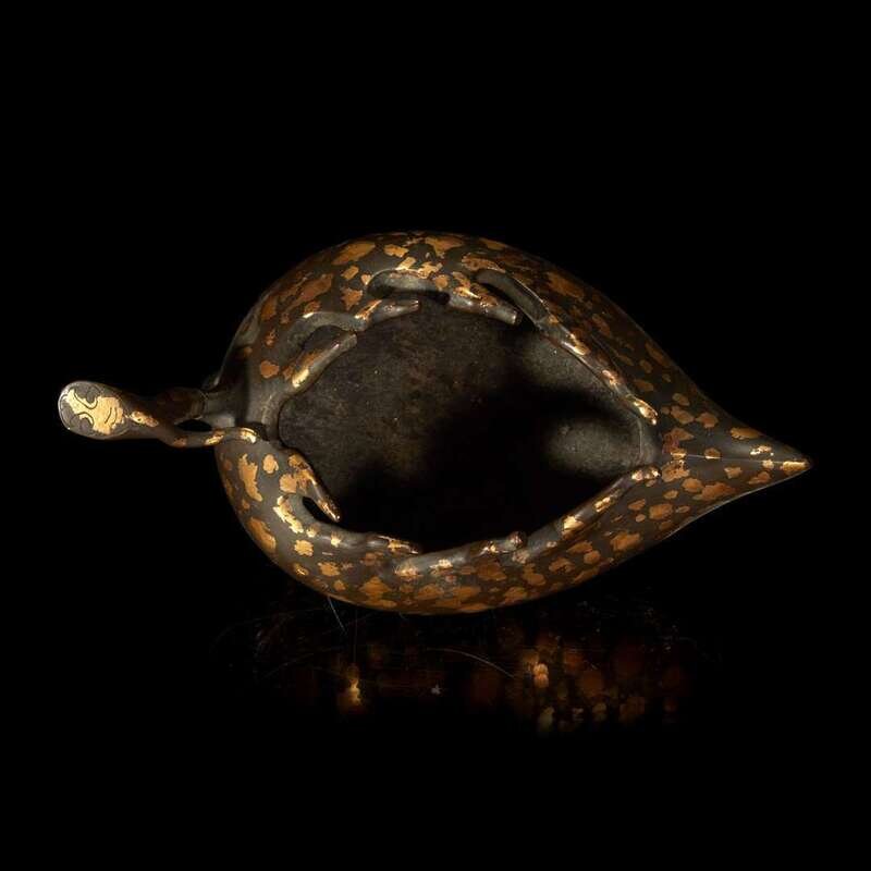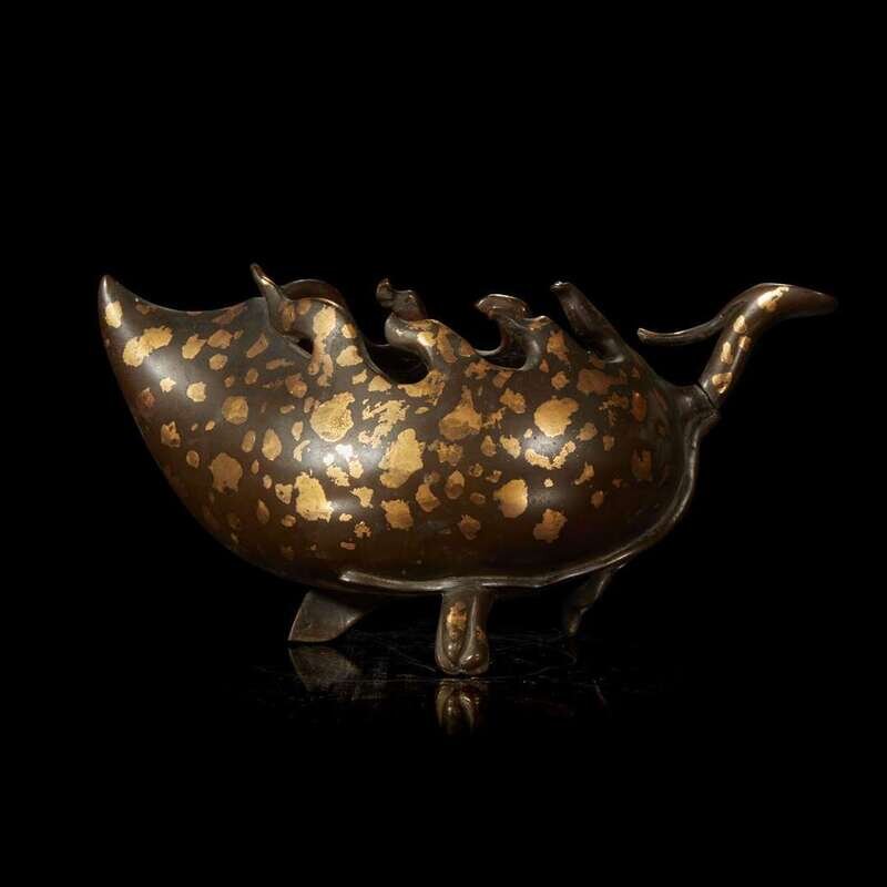A Chinese gilt-splashed bronze "Buddha's-hand" citron-form open vessel 洒金地佛手形铜香炉 Qing Dynasty ?
