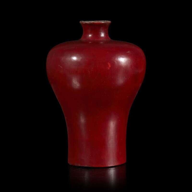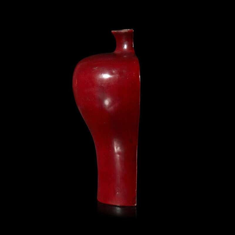 An unusual Chinese red lacquered “meiping” wall vase 朱红漆器梅瓶式壁瓶 "Wanguan Jianzhi" mark ???? ??