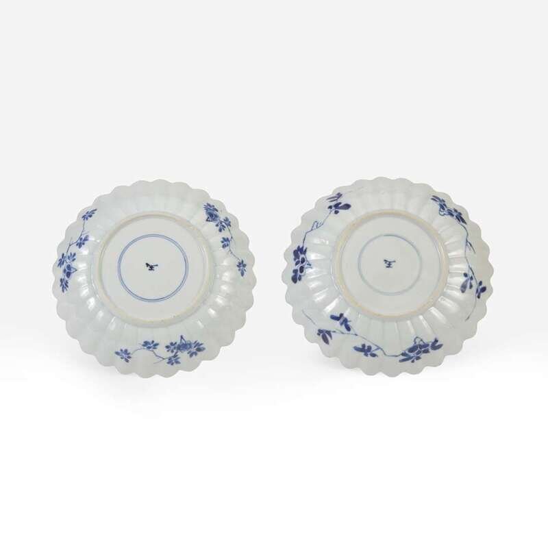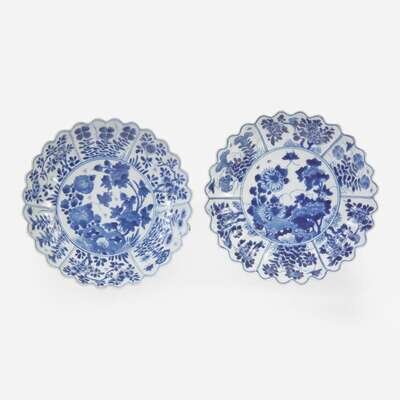 An associated pair of Chinese export blue and white porcelain "Chrysanthemum" dishes 青花出口瓷菊瓣盘 或一对 Kangxi period ? ??