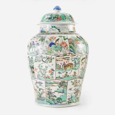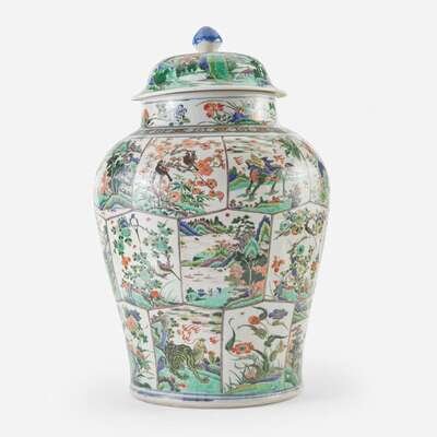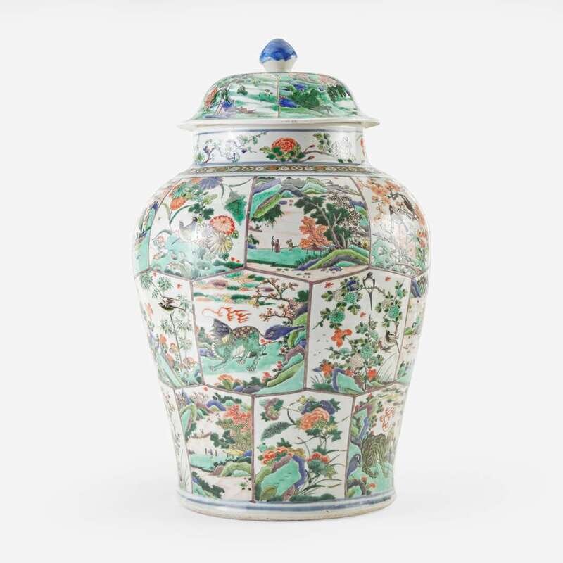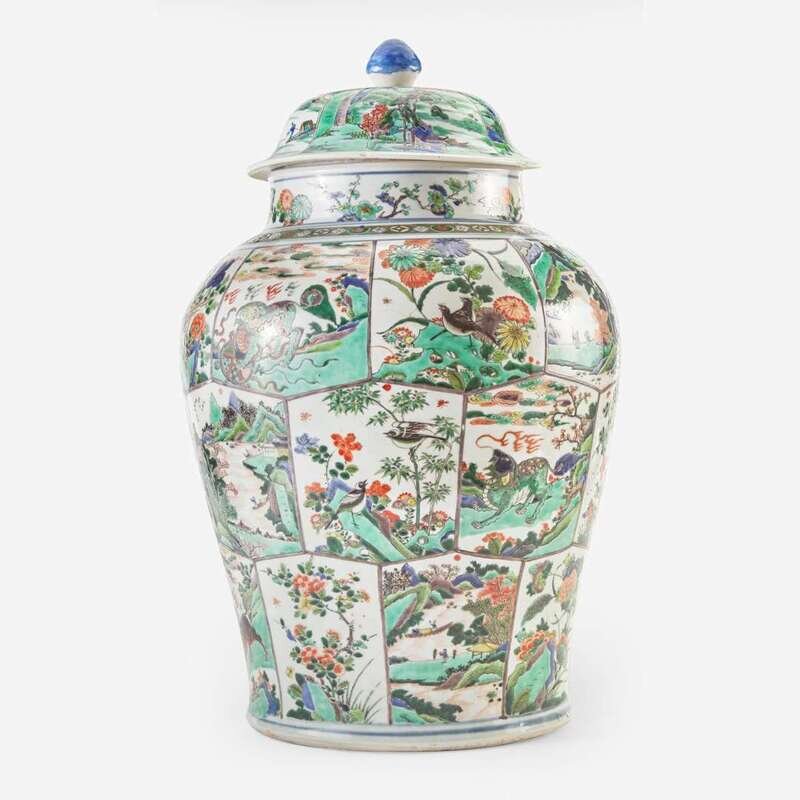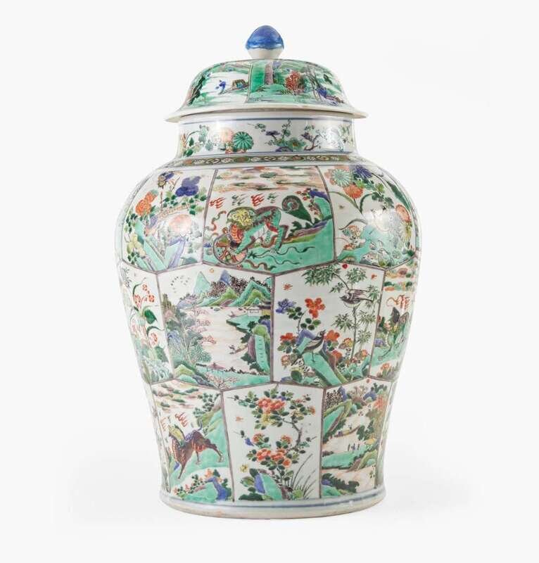 An impressive large Chinese famille verte-decorated jar and cover 五彩大盖罐 Kangxi period ? ??