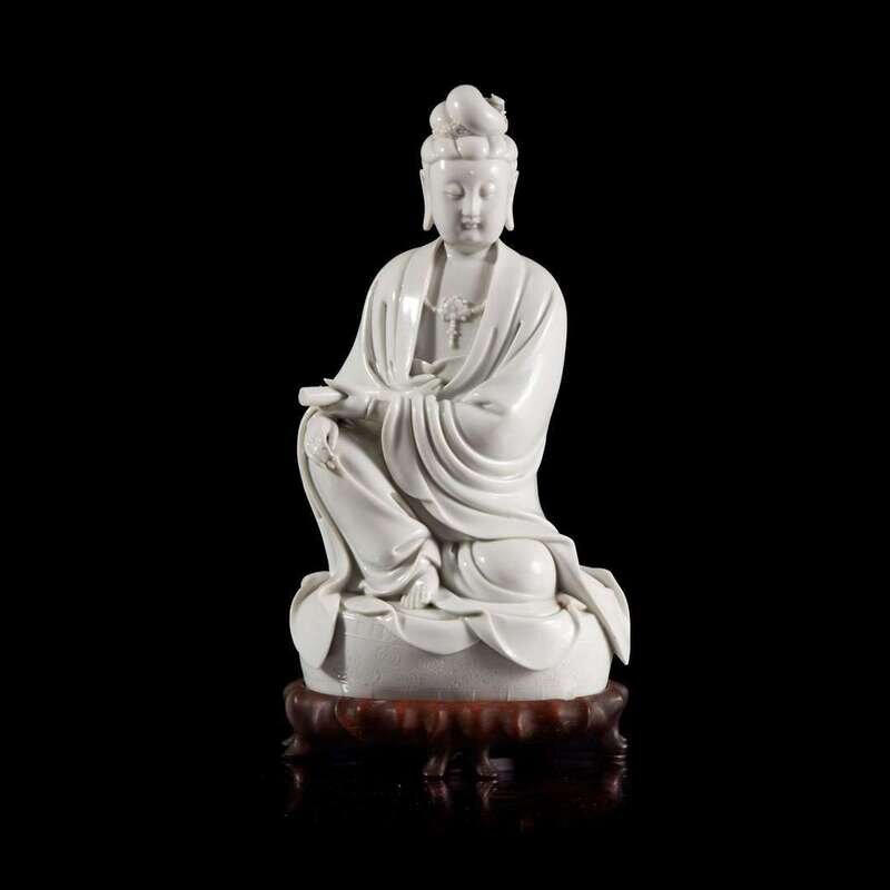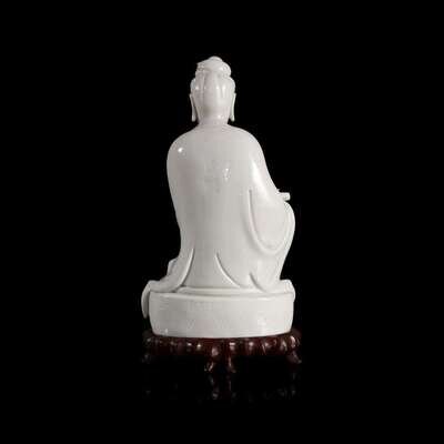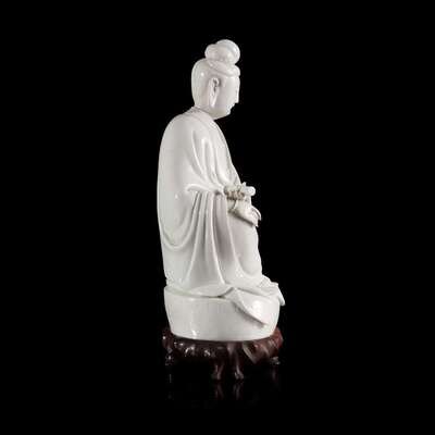 A Chinese blanc de chine figure of Guanyin 德化窑观音造像 "Dehua" and "Puji Yuren" mark ”??“ ? “????” ??