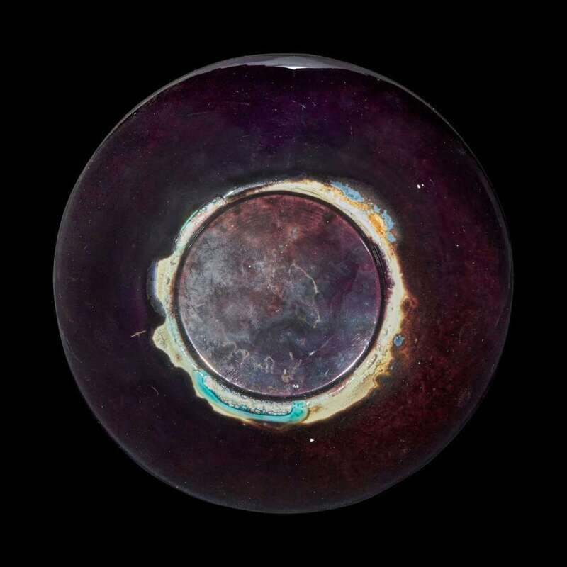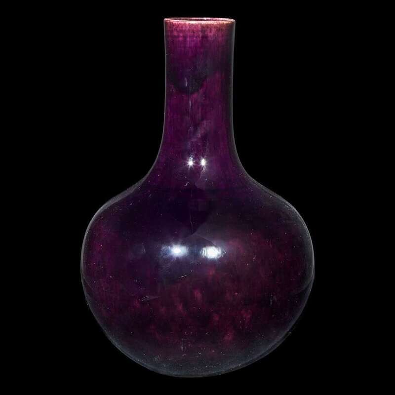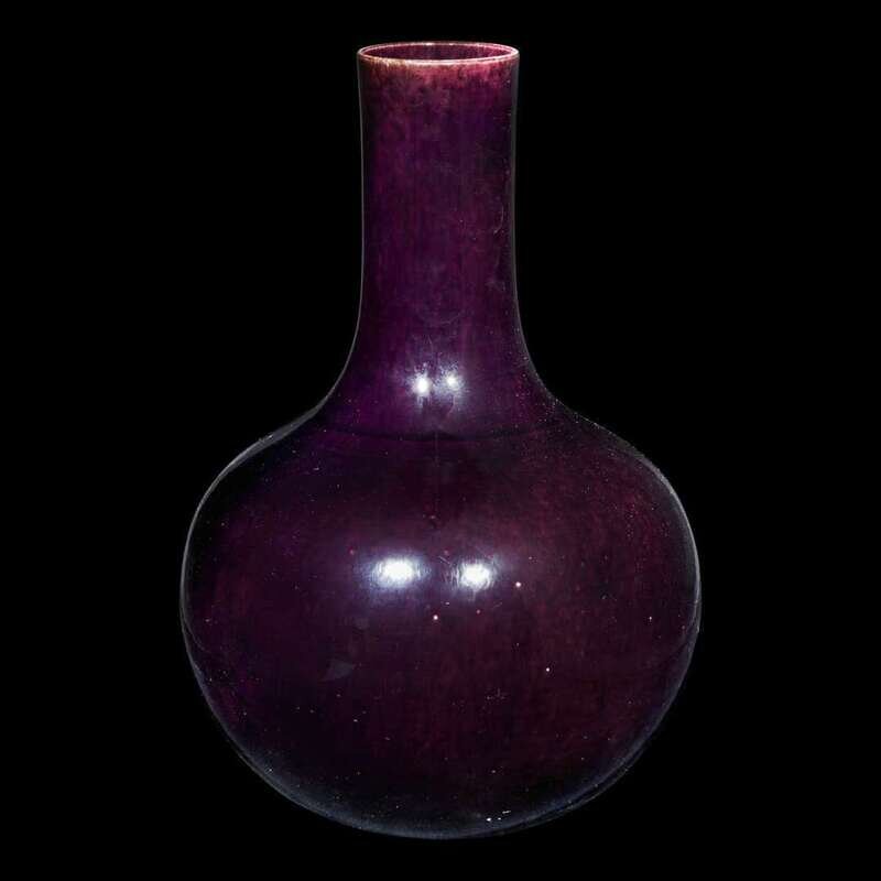 A Chinese aubergine-glazed porcelain bottle vase, Tianqiuping 茄皮紫天球瓶一只