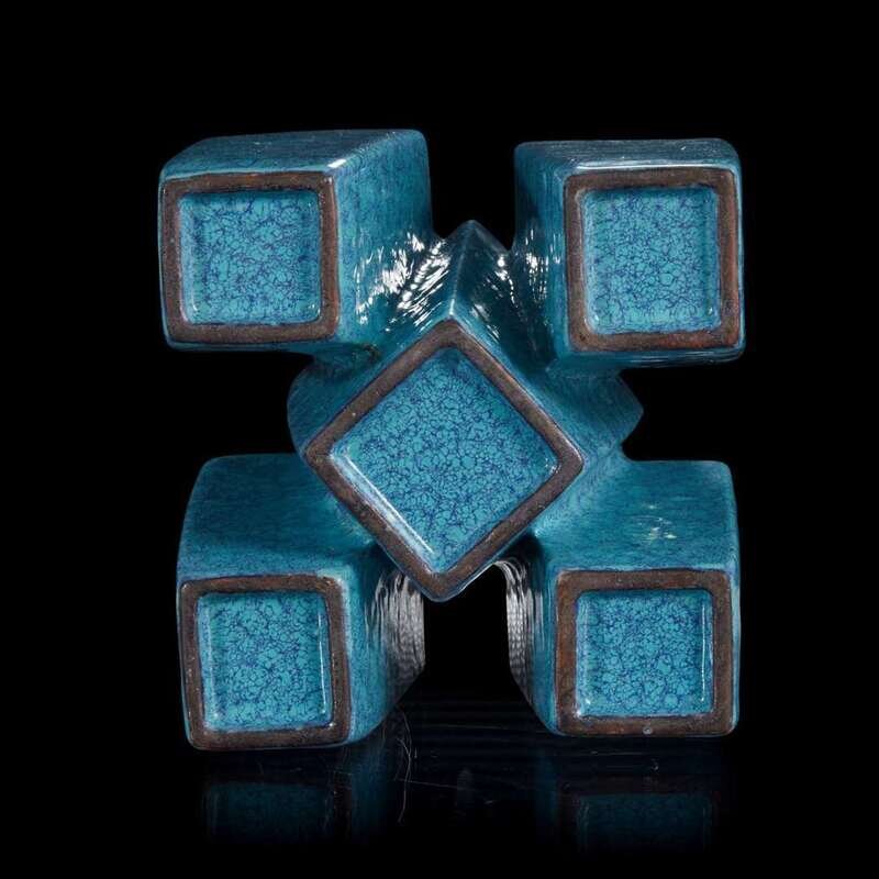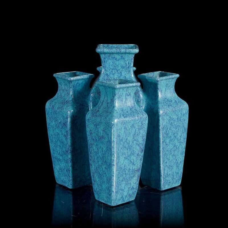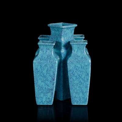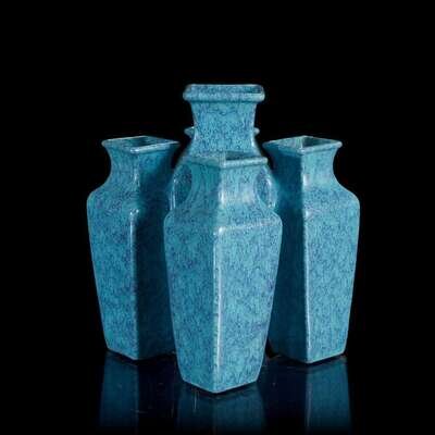 A Chinese "robin's-egg" glazed five-mouthed vase 炉钧釉五连瓶