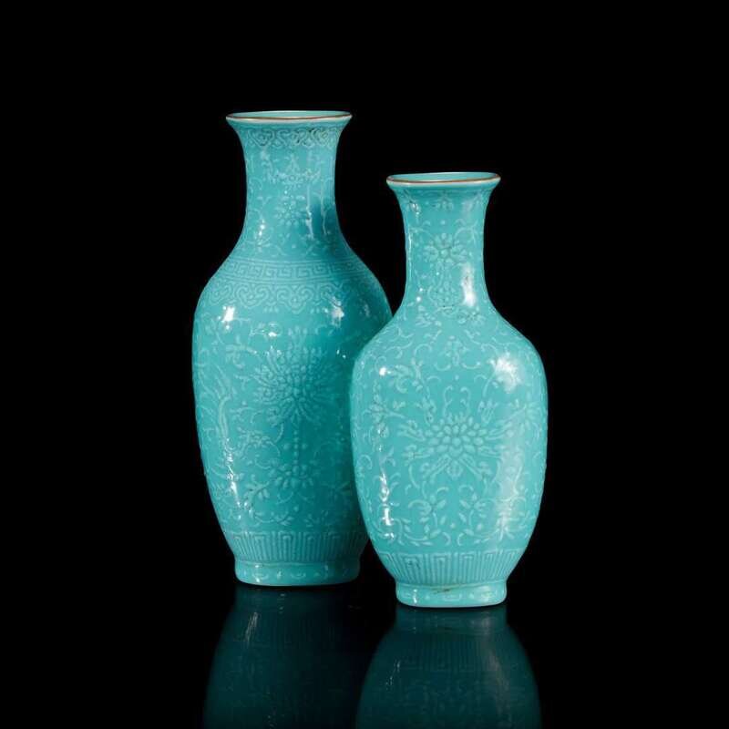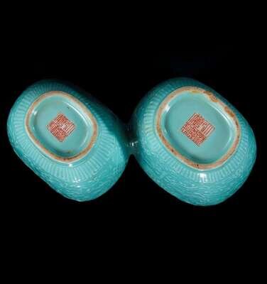 A Chinese turquoise ground-glazed porcelain double-vase 松石绿釉双联葫芦瓶