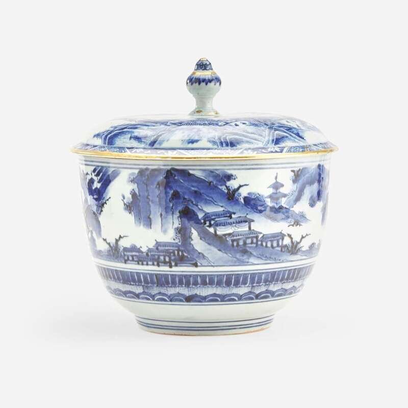 A Large Japanese blue and white porcelain deep bowl with associated cover 日本大罐及盖子 17th/18th century ???????