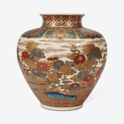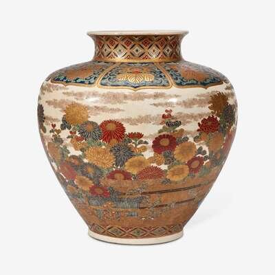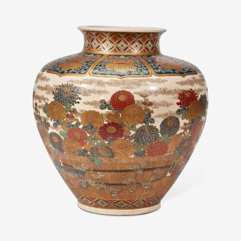 A large Japanese enameled Satsuma vase 日本珐琅彩萨摩烧大罐 19th century ????