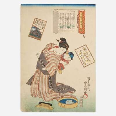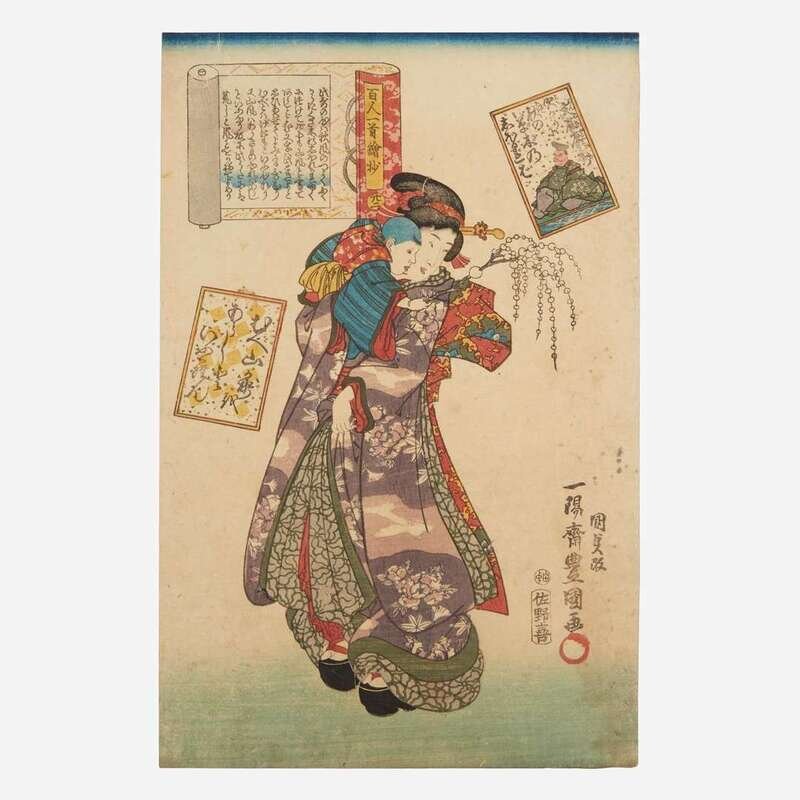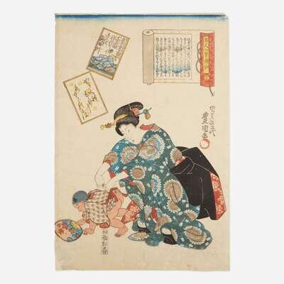 -Utagawa Kunisada (Toyokuni III): Three works from the series Hyakunin-isshu Emyo (One Hundred Poems by one hundred Poets) circa 1844, #17, #19, #22