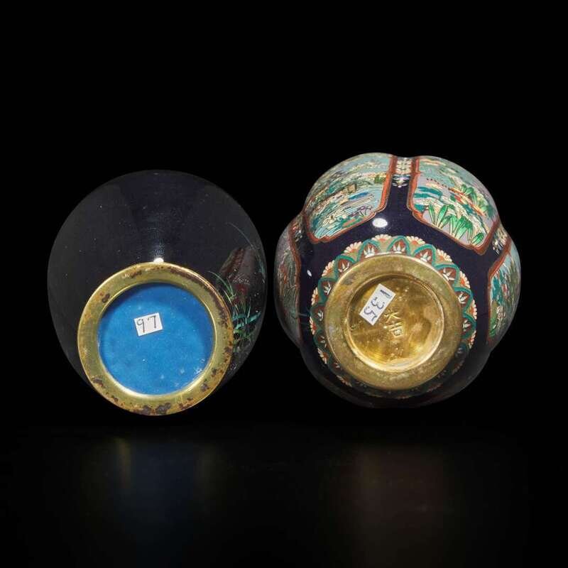 Two fine Japanese cloisonné small cabinet vases 日本铜胎掐丝珐琅花瓶两件