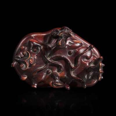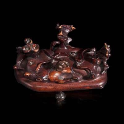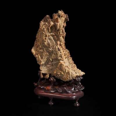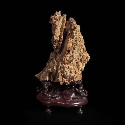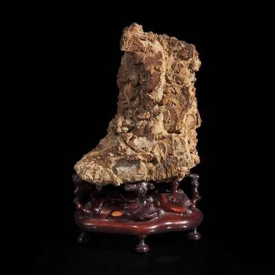 A small scholar's stone on stand 灵璧石及底座