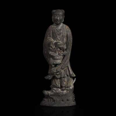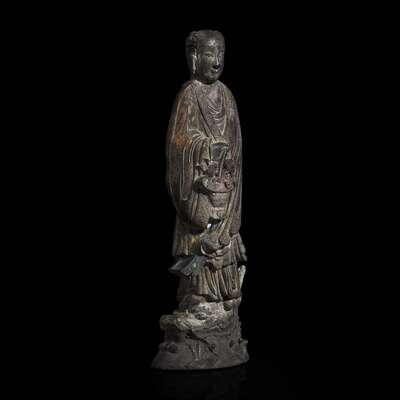 A Chinese parcel-gilt "Lan Caihe" ink cake 漆金仙人造形墨饼一件 "Hu ziqing" mark ??????; Qing dynasty, 19th century ? ????