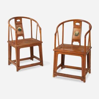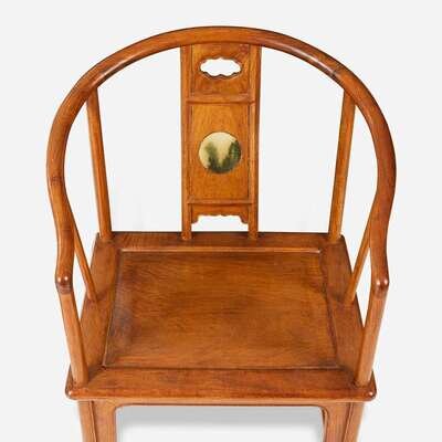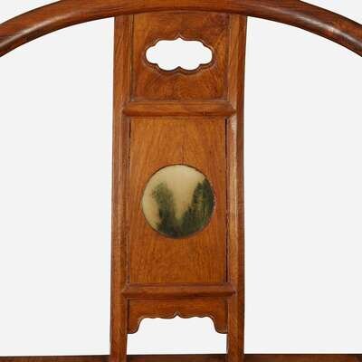 A pair of Chinese marble-inset hardwood continuous back armchairs 硬木嵌大理石圈椅一对