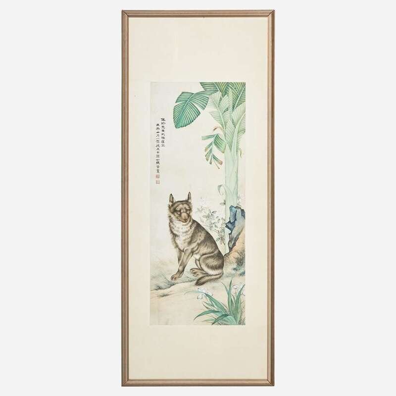 Ma Jin 马晋 小狗与芭蕉树图 (Chinese b.1900-d.1970)