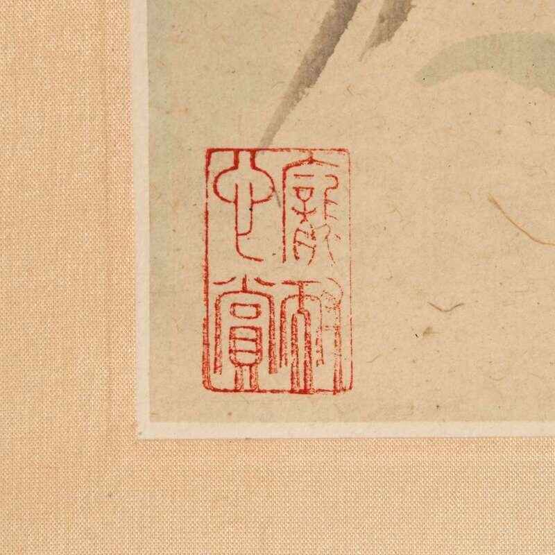 Ink and color on paper, inscribed and with one seal lower right, collector's seal of Alice Boney lower left, mounted as a hanging scroll.