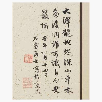 Ink on gold-flecked paper, inscribed and with two seals lower right; framed, matted and glazed