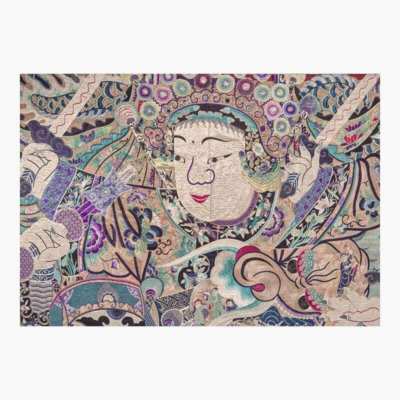 A very large and unusual Chinese silk-embroidered tapestry 巨幅京剧人物挂毯 Late Qing dynasty ??
