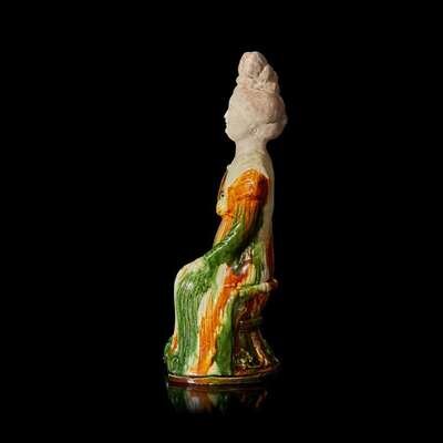 A Chinese sancai-glazed pottery figure of a seated woman 唐三彩仕女坐像 Tang dynasty ?