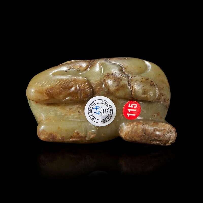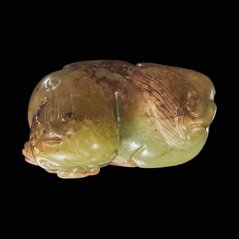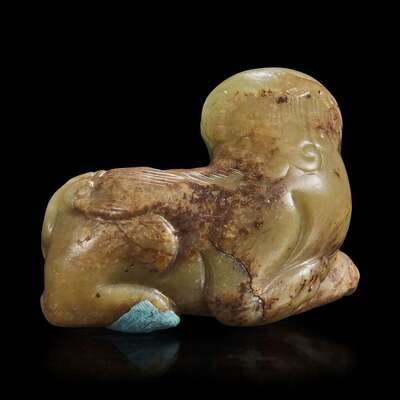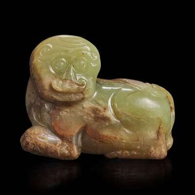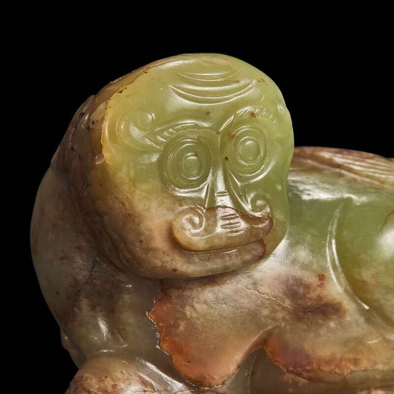 A Chinese jade carving of a mythological animal 瑞兽玉雕 Possibly Six Dynasties/Tang ???????