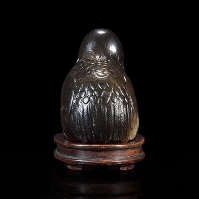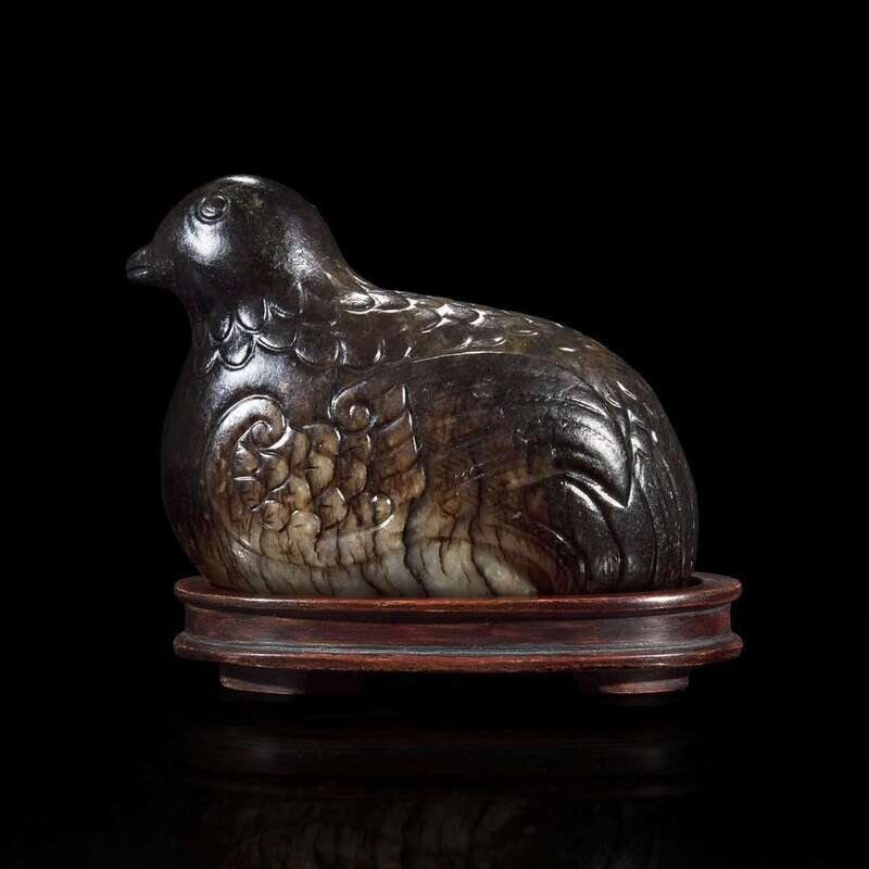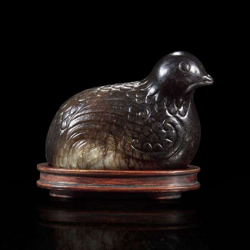A Chinese dark blackish-brown and grey jade carving of a quail 玉雕鹧鸪 Ming to early Qing dynasty ????