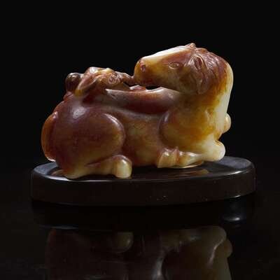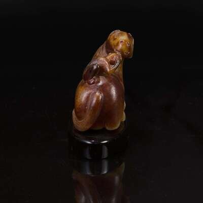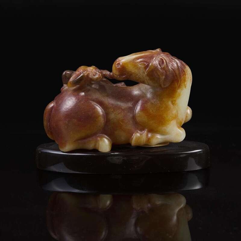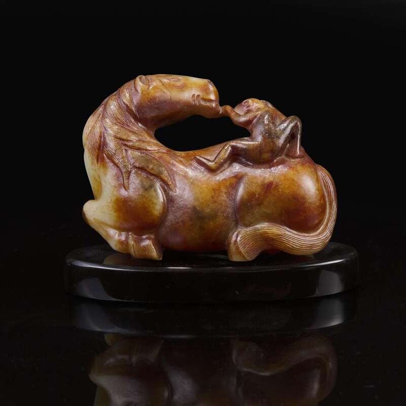 A Chinese yellowish and russet jade "Horse and Monkey" group 马上封”猴“玉雕 18th century or later ???????