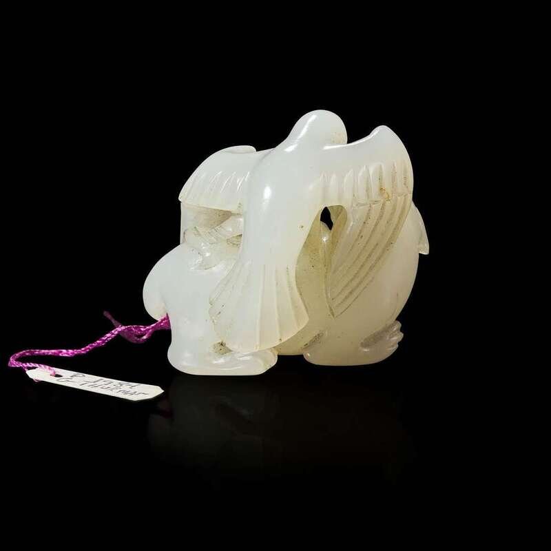 A Chinese carved white jade bird and beast pendant 玉雕一件 Qing dynasty ?