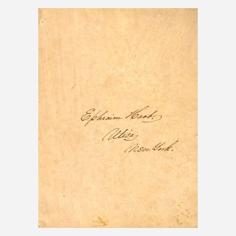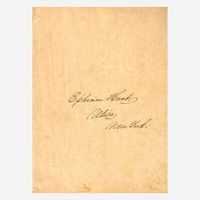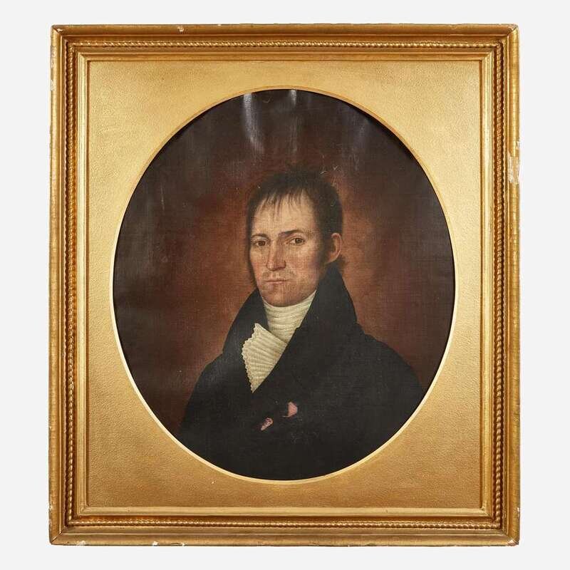Verso signed, "J Brown Pinxt" and inscribed, "E.H. AE 35/ April 30, 1809," oil on canvas, framed, accompanied by old paper sheet inscribed in ink, "Ephraim Hart/ Utica New York."