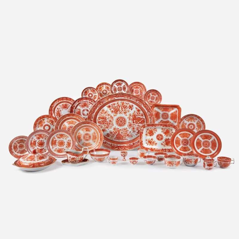 A collection of thirty-four Chinese Export Orange Fitzhugh porcelain tablewares circa 1800