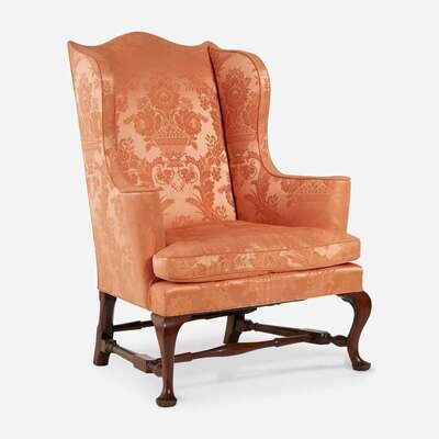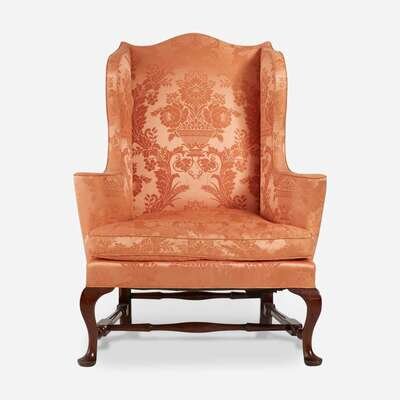 A Queen Anne upholstered mahogany and maple easy chair Boston, MA, 18th century and later