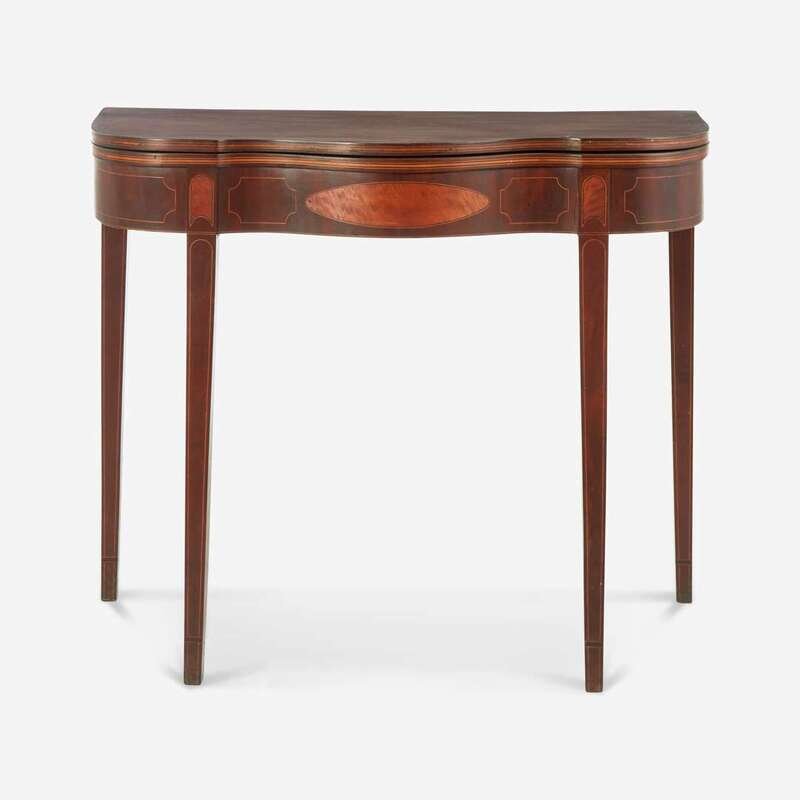 A Federal inlaid mahogany and satinwood card table Probably Philadelphia, PA, circa 1800