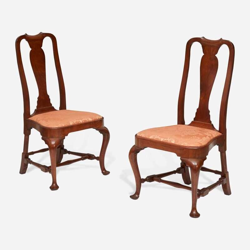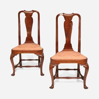 A pair of Queen Anne carved walnut compass-seat side chairs Boston, MA, circa 1745