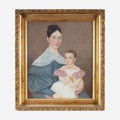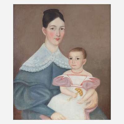 American School 19th century Portrait of a Jerusha Baker (1814-1885) and child of Nantucket, Massachusetts