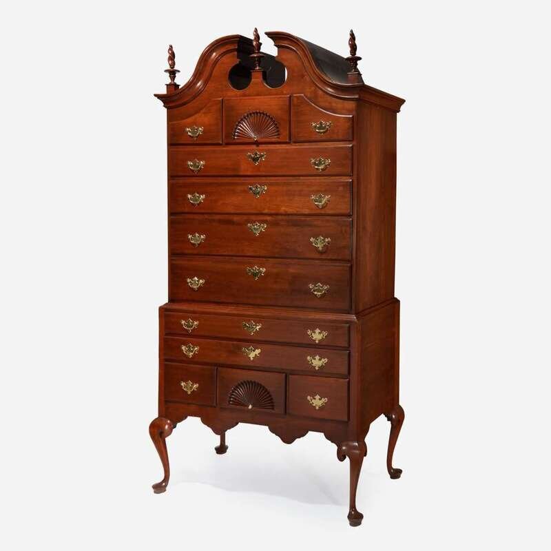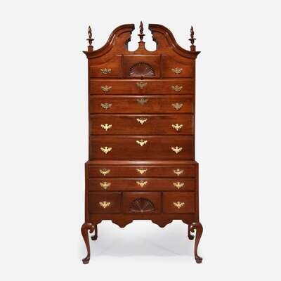 A Queen Anne carved cherry bonnet-top high chest New England, possibly Rhode Island, circa 1775