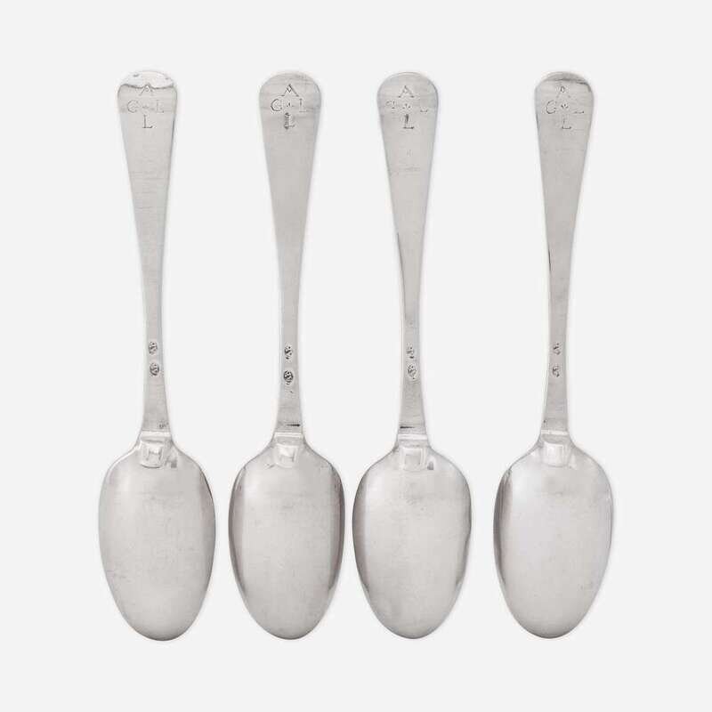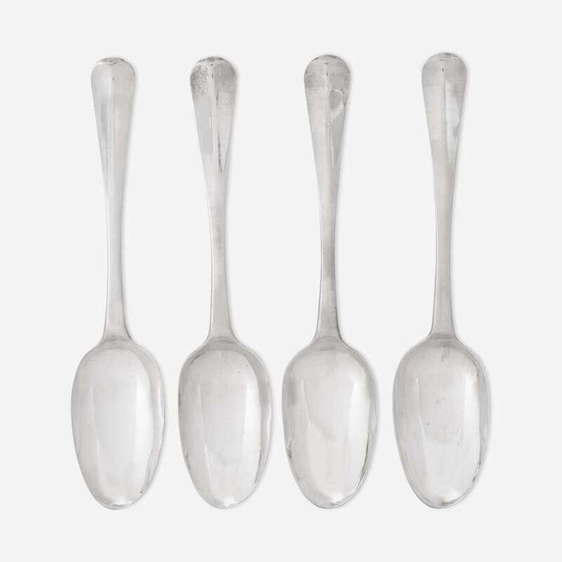 A rare set of four silver tablespoons Adrian Bancker (1703-1772), New York, NY, circa 1740