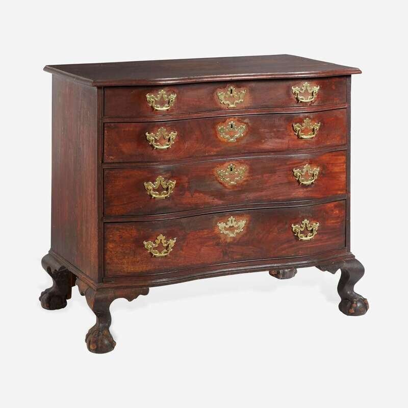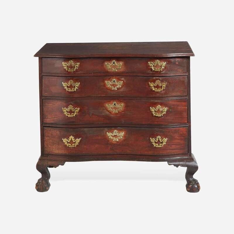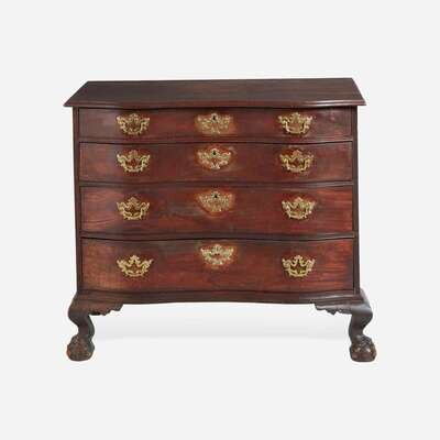 A Chippendale carved mahogany oxbow chest of drawers New England, probably Boston, MA, circa 1770