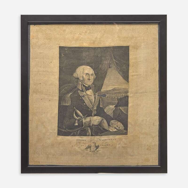 A rare stipple-engraved portrait of George Washington (1732-1799) on silk Engraved by John Galland (active 1796-1817) after Francis Bartoli (Italian, 1765-1796) and Gilbert Stuart (1755-1828), circa 1810