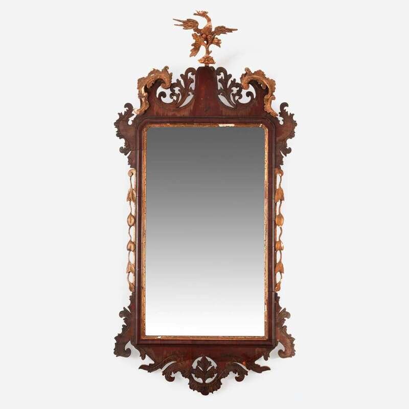 A Chippendale fret-carved mahogany and parcel-gilt looking glass 18th / 19th century