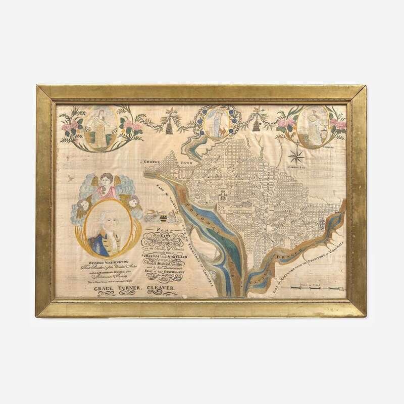 A rare embroidered and painted "Plan of the City of Washington" Worked by Grace Turner Cleaver (1786-1862), Alexandria, VA, circa 1802